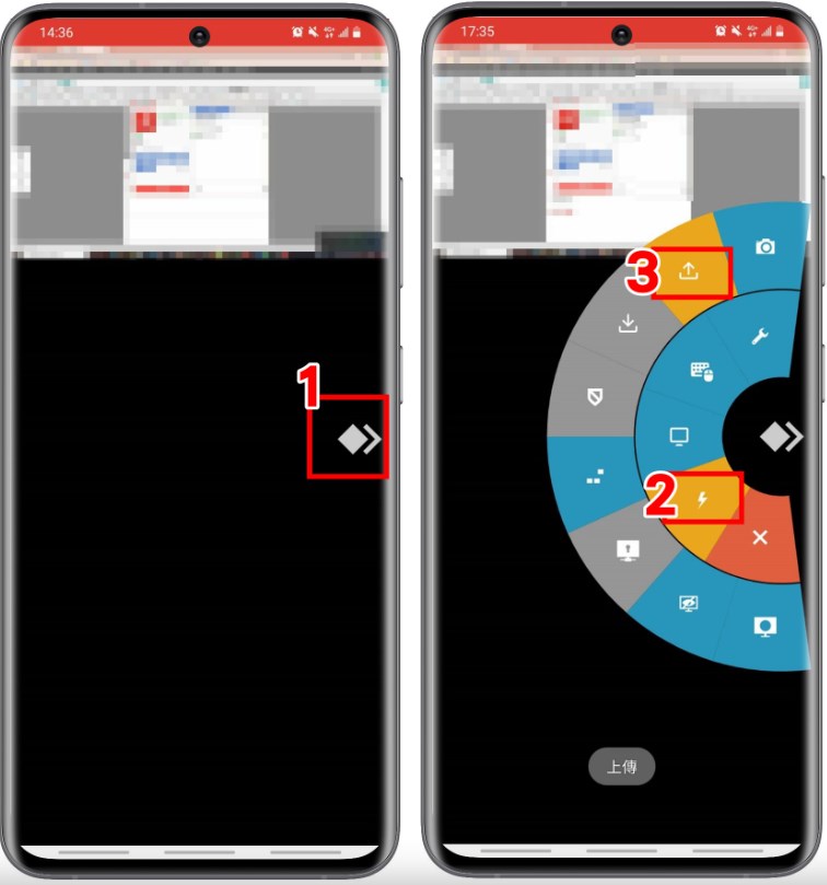 1.主電腦連接遠端手機後,點選右上角[瀏覽檔案]