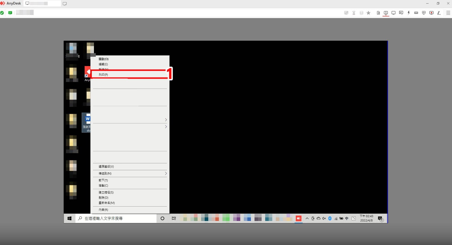 1.連接遠端桌面,遠端裝置權限開啟[在設備螢幕上繪圖]