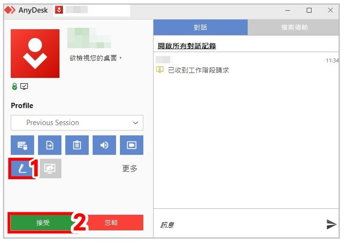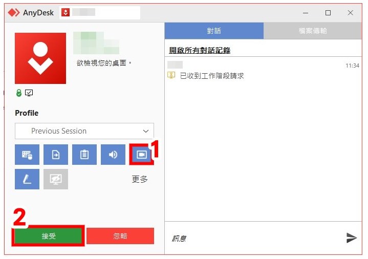 3.在想遠端連接的電腦會跳出視窗,點選[接受]