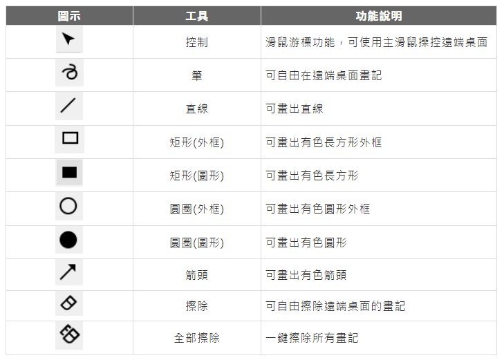 白板工具、螢幕錄製功能:團隊討論共享螢幕的同時可以標註畫面並且保留會議紀錄。