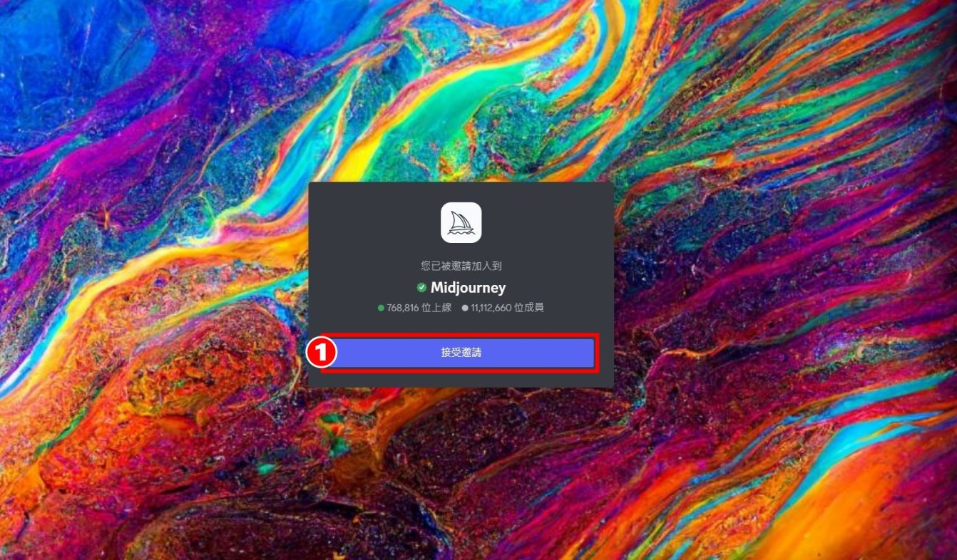 1.點選[接受邀請]加入「Midjourney」Discord頻道