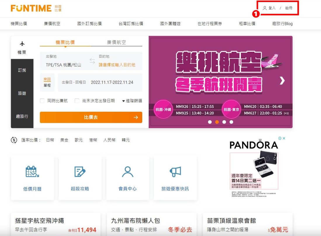 1.點選主頁右上角[登入/註冊]