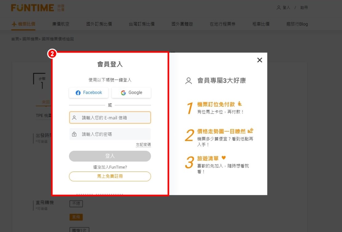 2.登入會員(可以用facebook或Google帳號快速登入)
