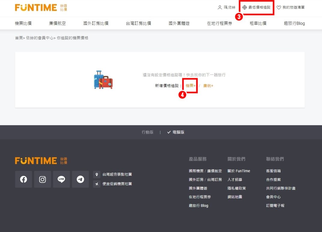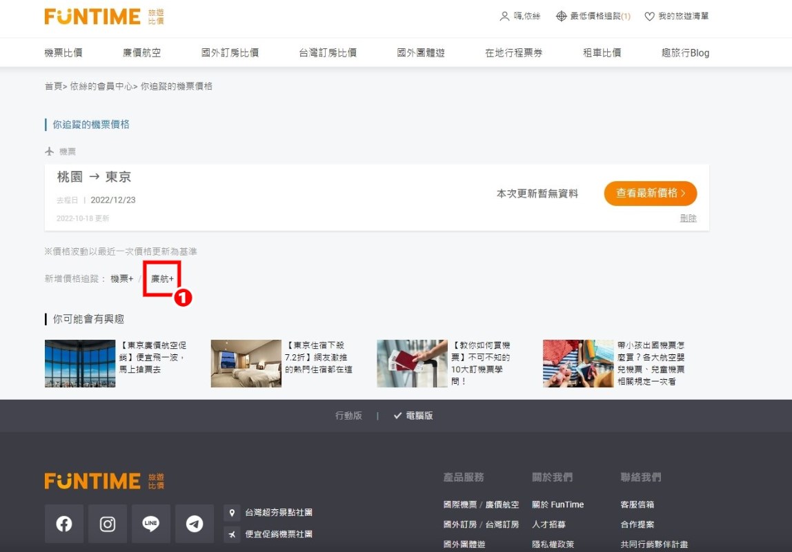 1.在最低價格追蹤頁面,點選[廉航+]