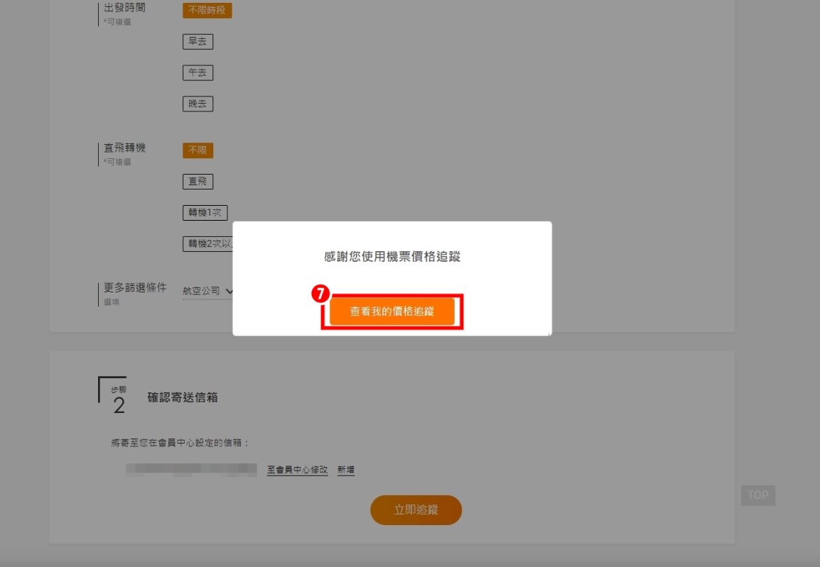 價格追蹤通知:只要登入會員,就可以追蹤查詢的機票價格,若是有更低價格會通知