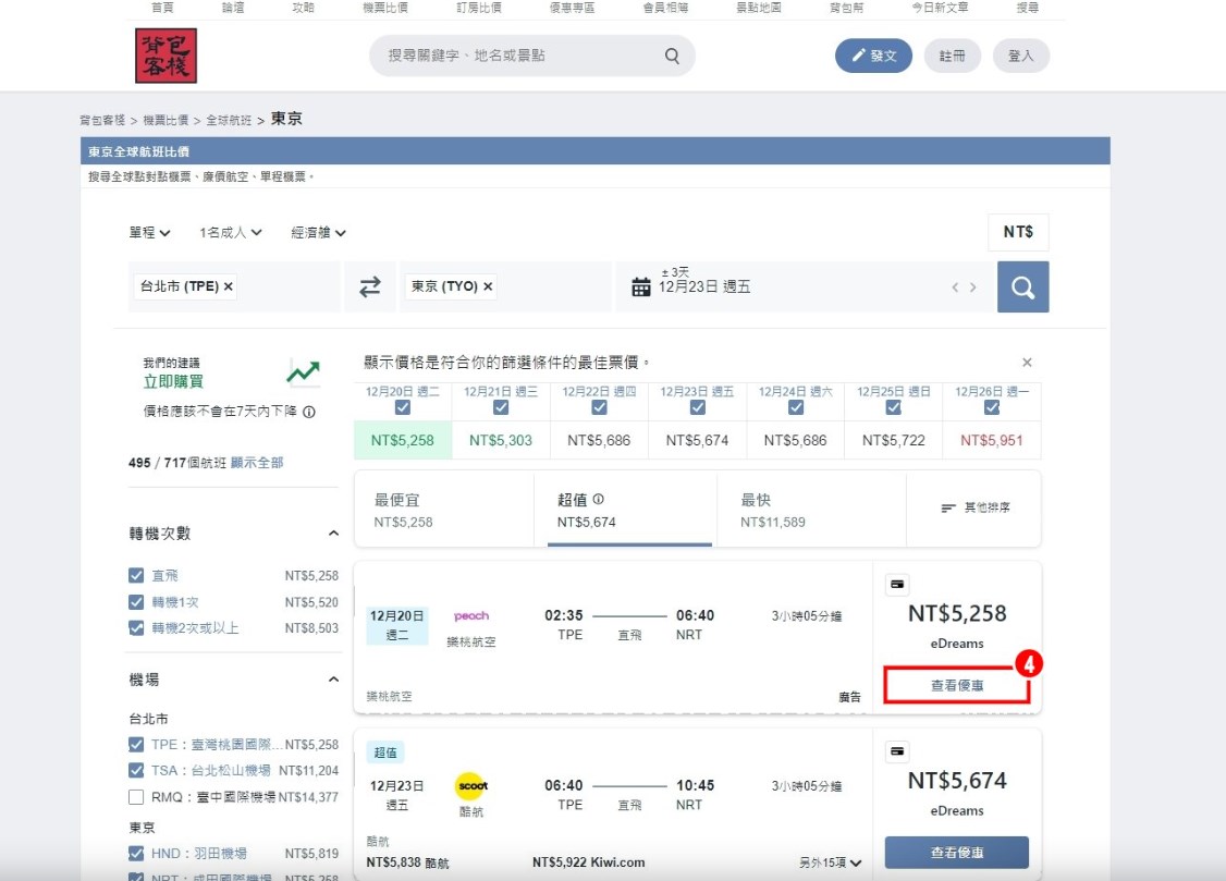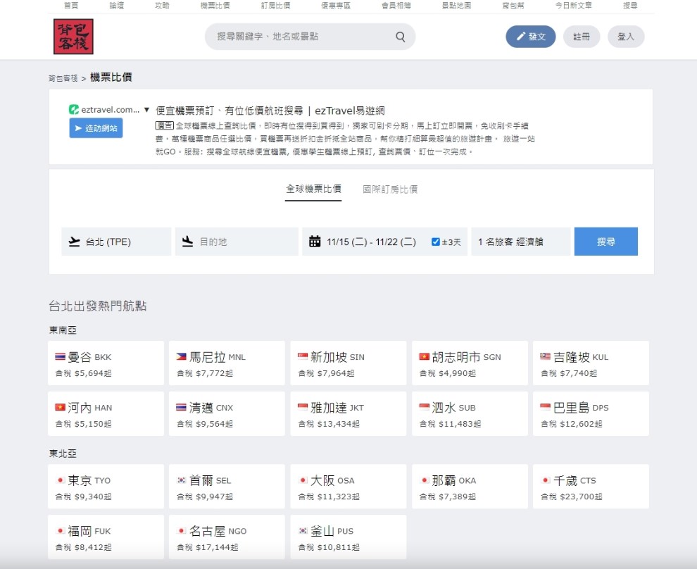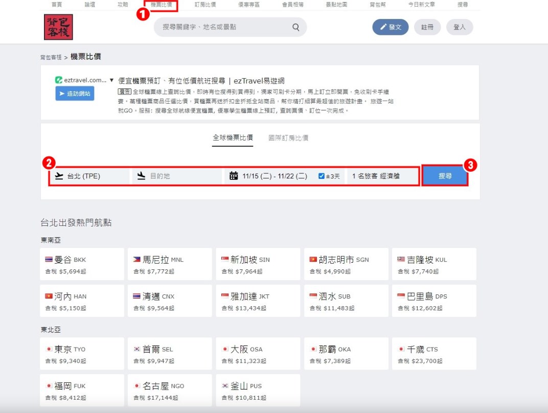 ▼【如何在背包客棧做機票比價】