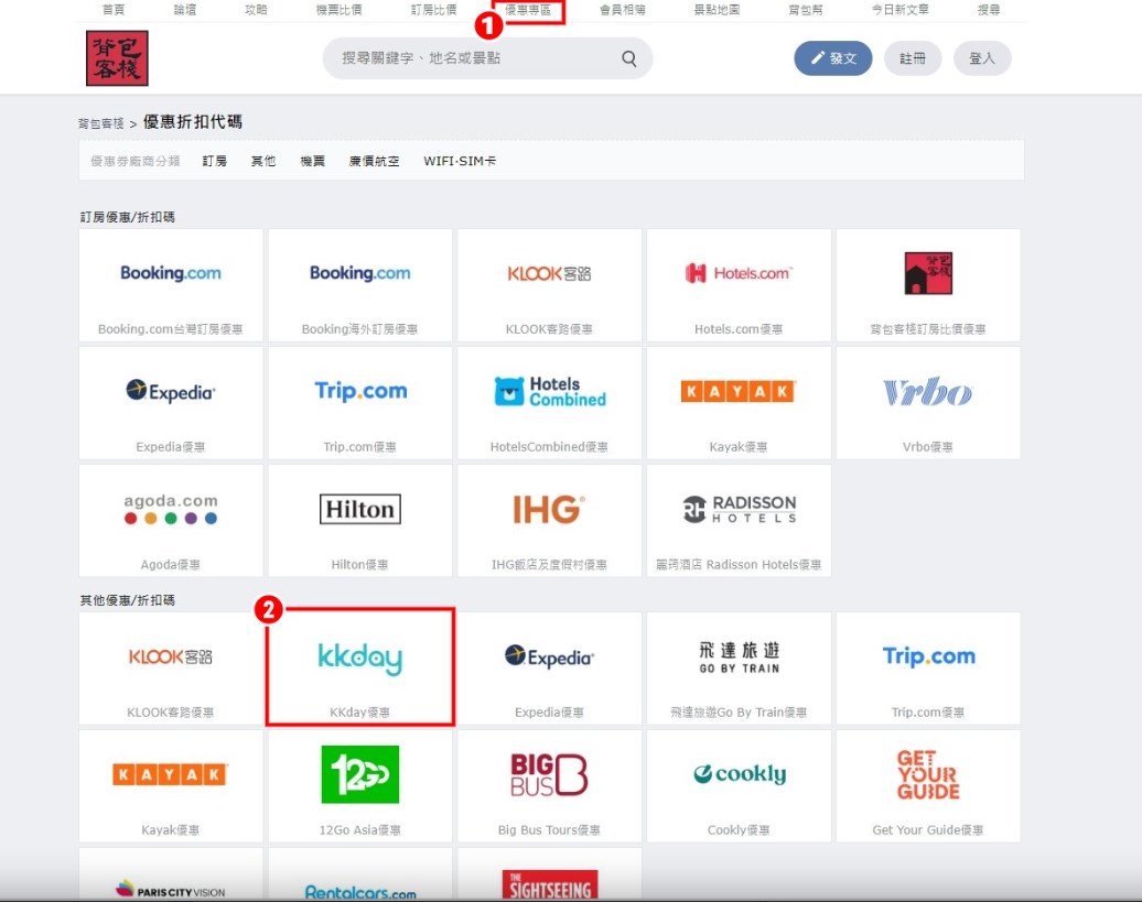 除了機票比價以外,還要推薦給追求高CP值旅遊的大家一個非常好用的功能「優惠專區」,背包客棧已經幫你整理好各大訂房、訂票、機票、廉價航空、網路SIM卡的優惠,可以有事沒事就來這裡看一下,快速掌握各家網站的優惠喔!