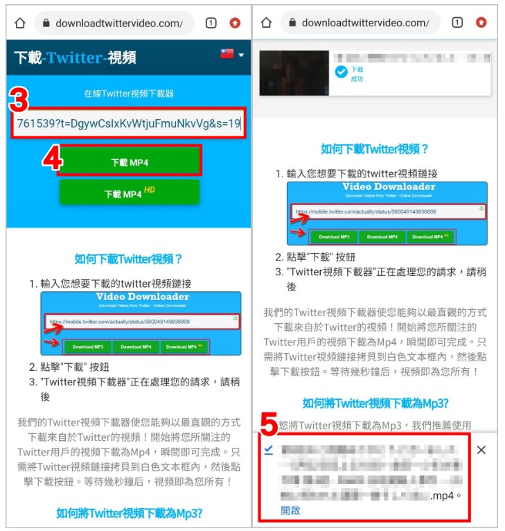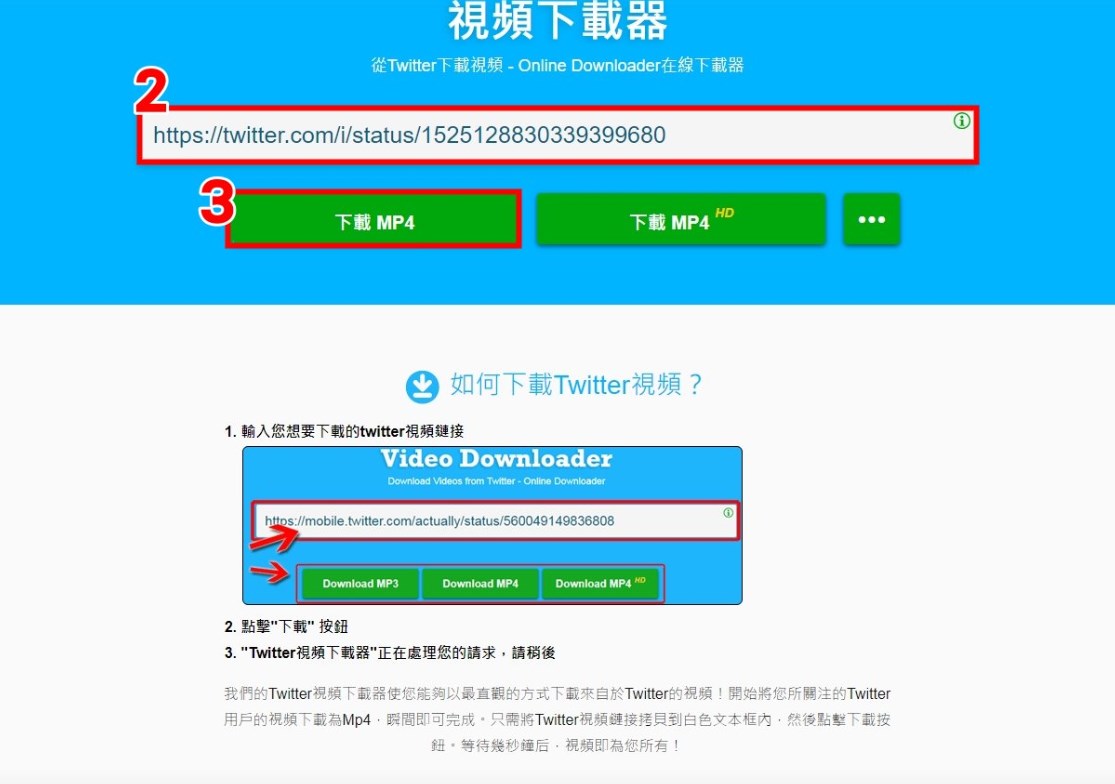 這是個人覺得最方便也最快速的方法,不需要額外安裝任何軟體或是APP,只要到網站的輸入欄貼上想要下載的Twitter影片連結,就可以下載MP4檔案,無論是手機APP還是網頁版的影片都可以成功下載喔!