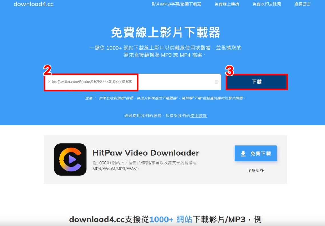Twitter 影片下載的第一種方式就是使用「線上下載網站」,免費提供 Twitter 影片下載的網站並不少,包含 Twitter 視頻下載器、Twitter Video Downloader、download4.cc 等等,實用性都相當高,但缺點就是部分下載網站會跳出彈出式廣告,有點令人厭煩。