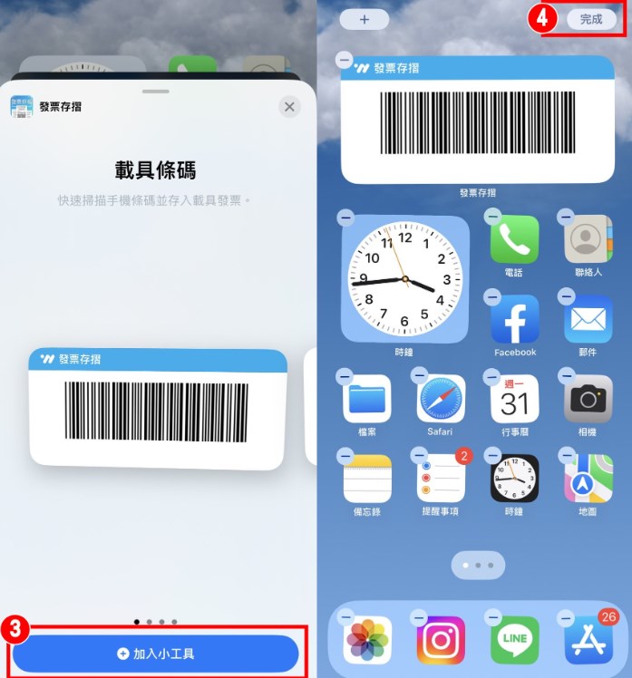 4.點選[完成],成功把載具條碼放到主畫面啦!