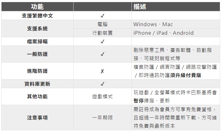 由俄羅斯「卡巴斯基實驗室」所開發的推出的 Kaspersky(卡巴斯基)根本無須多說,這款大眾防毒軟體不僅付費版有著很高的評價,連免費版都十分不賴!雖然免費版沒有完整版的所有功能,但是在一般個人使用上都可以輕鬆達到你的防護需求,不過有個小缺點就是,它會不斷跳出邀請你「升級為正式版」的提示。