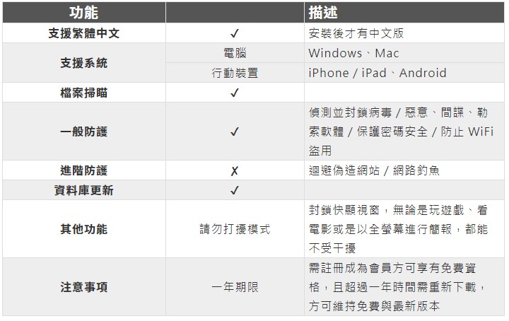 1.抵禦病毒、勒索軟體、網路釣魚、垃圾郵件等