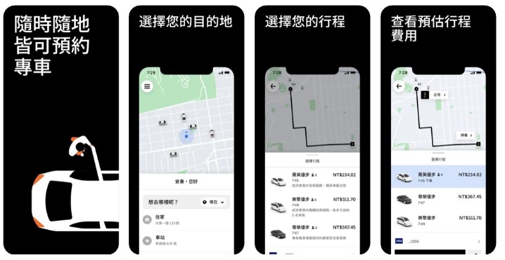 從美國引進的多元計程車「Uber」,最開始以公開透明的車資聞名,可以避免被司機繞路而價格落差大,可以透過Google Map定位你的上下車位置,叫車時還有多種車種可以選擇,可以依照你的人數或是特殊需求來選擇,例如:尊榮優步、菁英優步、菁英Plus、優步小黃、樂聚6人座、寶寶優步,讓更多有特殊需求的人更便利,不過Uber也有一般的小黃計程車,計費就是用常見的計程車跳錶。