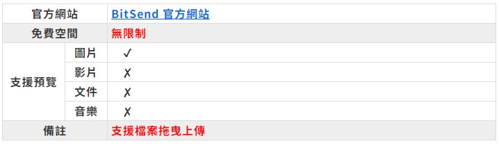 最後要跟大家介紹的這款 BitSend 跟上述 5 款很不同,BitSend 不需要註冊、不需要下載,只需要打開網頁就可以免費使用,而且,它提供無限制的上傳空間,同時上傳檔案的數量也不限!