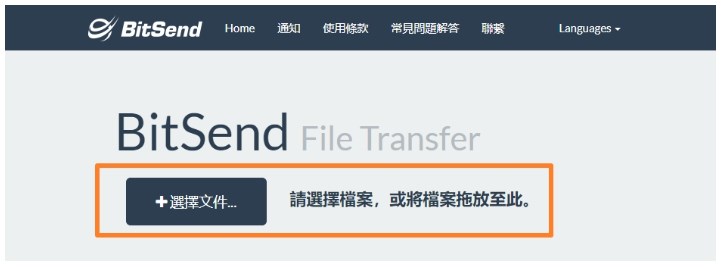 進入到官方網站後只要簡單點選 [選擇文件] 或是拖曳檔案,就可以輕鬆將你的檔案上傳至 BitSend 雲端。