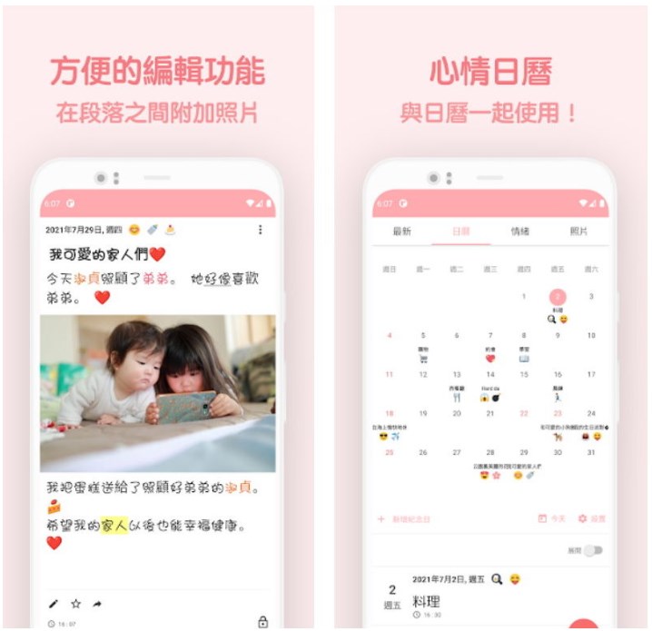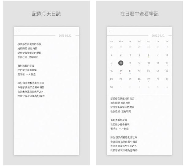 「日常-我的日記」功能非常多元,而且版面簡約、操作方式也很簡單,除了一般的文字記錄外,還可以附上照片、影片和音樂,能夠更全面地紀錄自己每一天的日常!