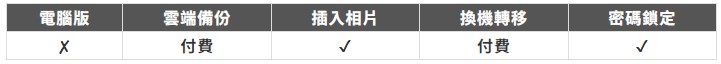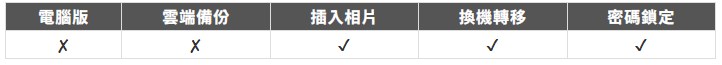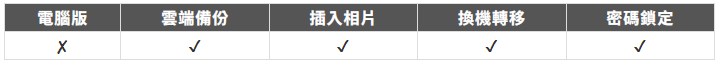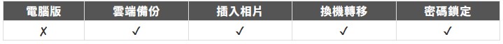 升級項目:移除所有廣告、新增150多個主題背景、新增700多個貼紙、新增25個字體、雲端自動備份、密碼鎖定等功能