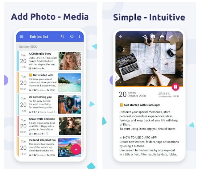標籤分類:能夠運用資料夾分類,方便查找相同主題類別的日記和照片。