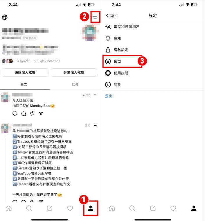▼【如何停用Threads帳號】