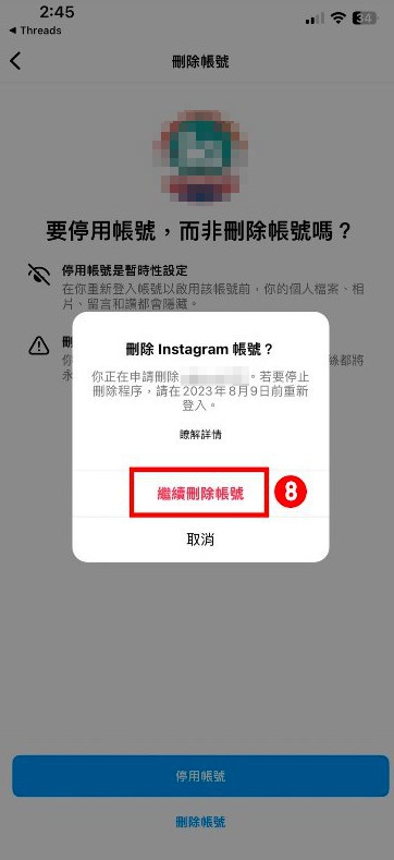Threads 停用帳號教學