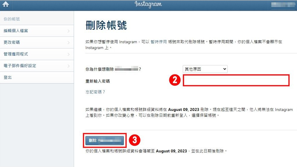 !注意!這個操作會連同你的Instagram帳號也一起被刪除!