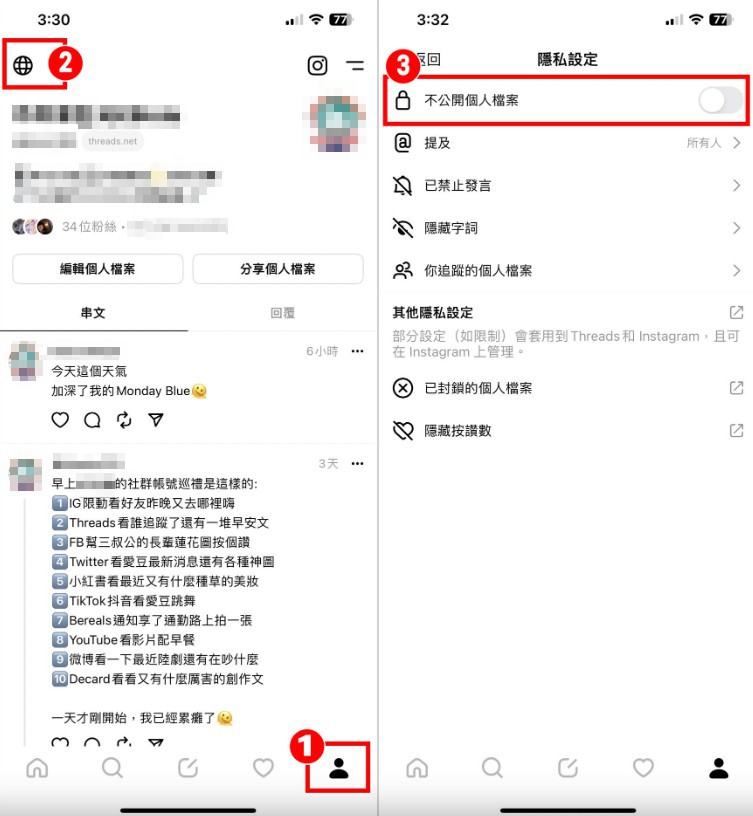 ▼【如何將Threads設為不公開】