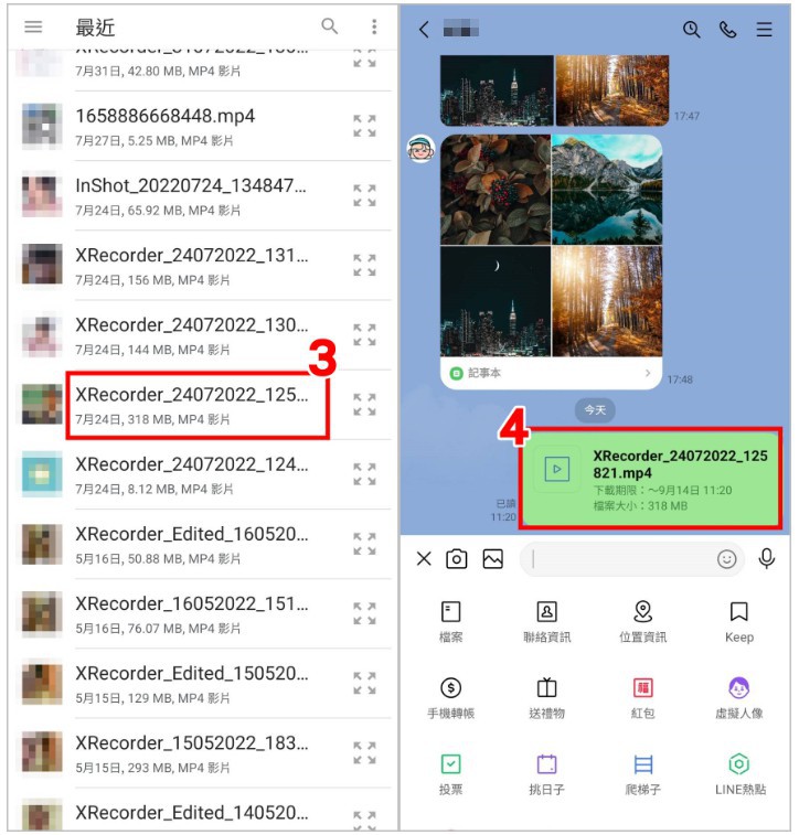 用LINE傳原圖是實測裡最簡單也最方便的方法!不過有一個缺點就是它畢竟是通訊軟體,不是雲端空間,所以無法長久保存原始畫質的照片、影片,時間一久就有可能無法下載了,而且如果是高畫質的原檔影片都會比較大,對方如果想觀看原檔影片需要先跑完檔案下載才能開啟,大家要打開原始影片檔案前一定要先確認網路流量和網路環境喔!
