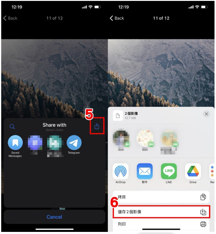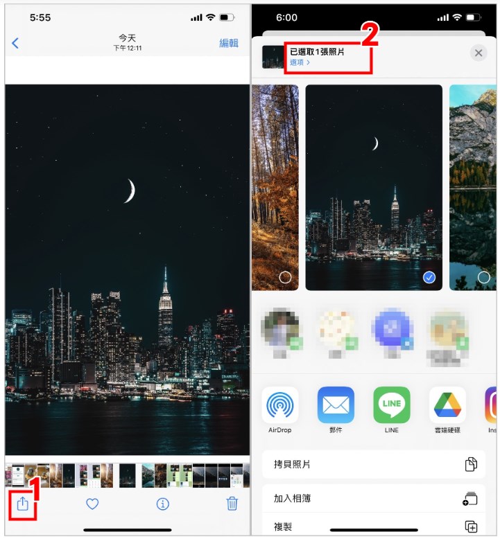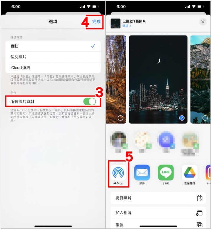 5.點選[AirDrop]即可選擇裝置傳送原檔照片