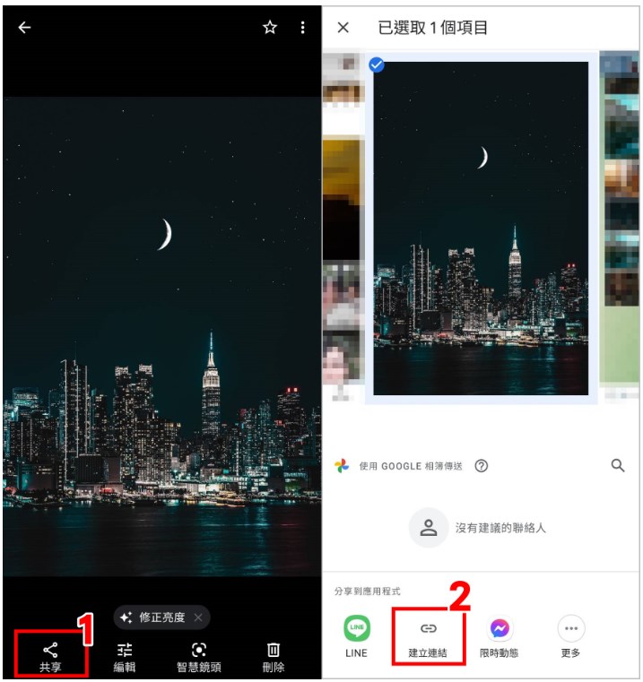 2.點選[建立連結]即可生成共享連結傳送給朋友