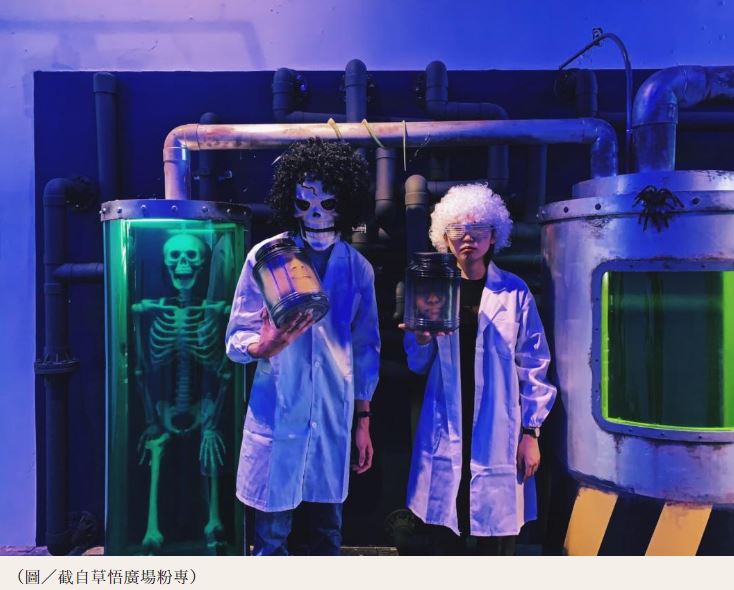 台中「草悟廣場」今年以怪奇實驗室為主題,打造神秘詭譎的免費打卡點!即日起B1的彩繪走廊區,改造成藍色詭異色調的情境空間,不僅有神秘實驗所能變身科學怪人,還能走入藥物調製所、光影實驗基地等場景,現場更免費提供白袍、實驗護目鏡、爆炸頭假髮等拍照道具,大小朋友可一起體驗裝扮成瘋狂博士,10月26日則預計舉辦「兒童界最瘋狂的萬聖遊行」,邀親子一起在週末Cosplay狂歡!