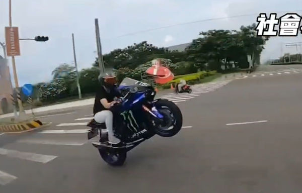 一名網友在社群媒體「社會事新聞影音」上PO出一段影片,影片中一台紅牌重機在台一線的台鋼科大前,行經一處十字路口時突然拉高轉速,整台車「翹孤輪」疾駛而去,耍帥意味濃厚。
