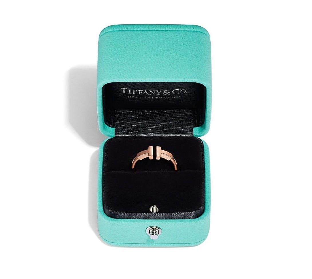 Tiffany & Co. 的T系列以其簡約而強大的設計風格聞名,特別是18K玫瑰金的T wire窄版戒指,以開口設計展現獨特的個性美,深受時尚愛好者喜愛。