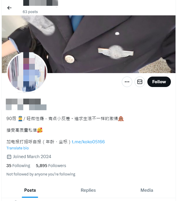 社群平台X上最近出現了一名自稱為「雲警官」的女性用戶,她以穿著大陸警察制服的自拍照片以及大量性感照片引起廣泛關注和爭議。根據她在社群媒體上的發文顯示,白天她是一名嚴謹冷靜的城市安全守護者,夜晚則化身為大膽性感的裸女,展現內心的自由與熱情。