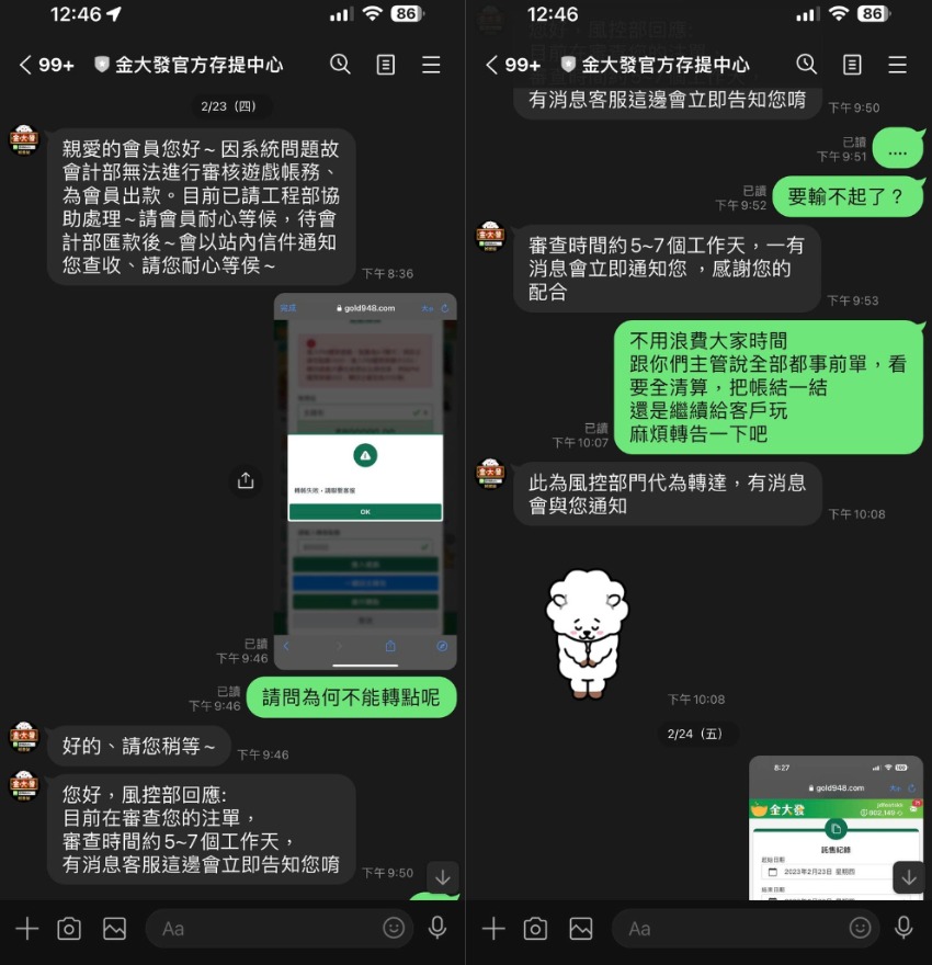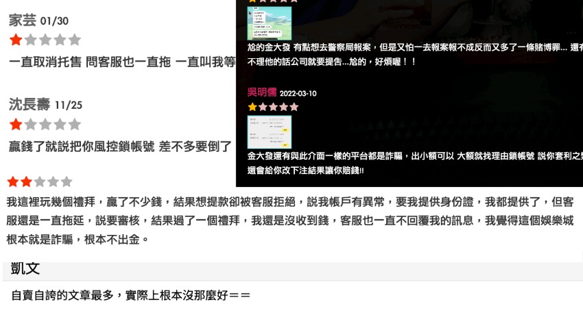 還有一位曾經的玩家透露:「起初我只是領取了一些娛樂城體驗金,沒想到贏了不少錢。然而,當我嘗試提領這些獎金時,他們就開始找各種藉口拖延,甚至凍結我的帳戶。」