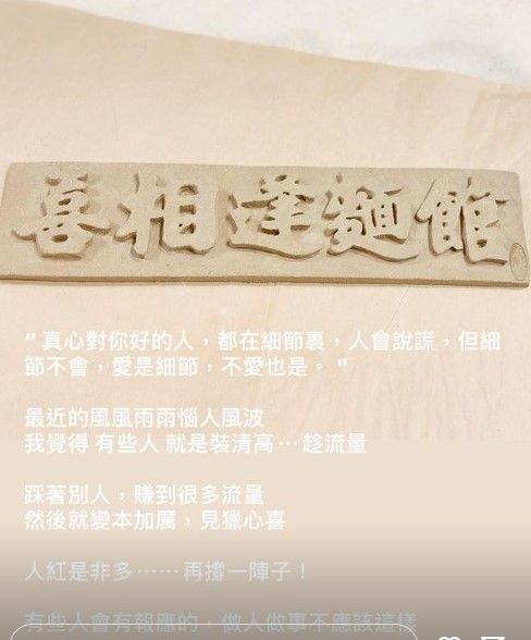 在動態限時發文中,老闆娘表達了對於這段風波的煩惱和不滿,同時勉勵自己和團隊堅持下去,並信心滿滿地說道:「有些人會有報應的,做人做事不應該這樣。」