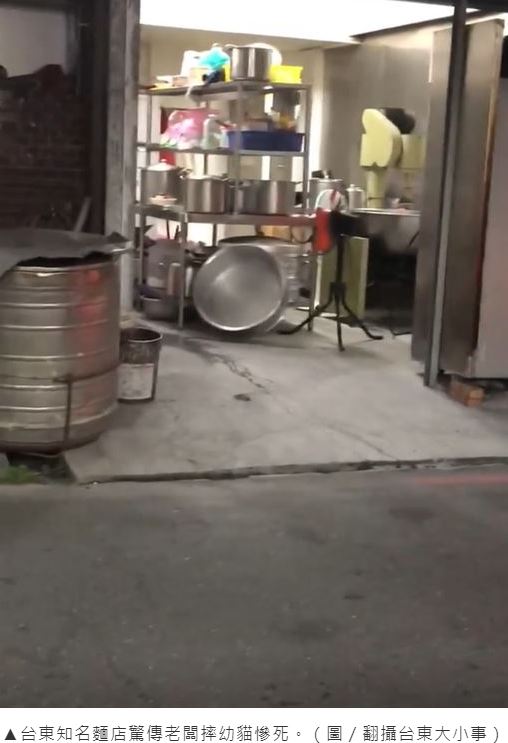 網友PO文表示「剛剛(27日)6點49分,台東知名麵店廚房發生一件人為摔貓致死事件,該店樓頂有數隻小貓,麵店老闆將屋頂其中一隻黑色小貓抓起,用力摔到地板上,小貓爆頭流血抽搐死亡,老闆看到一大堆麵攤客人及路人圍觀,馬上把還在抽搐的貓咪放到米袋,把地上大量的血沖掉,再將藏有貓咪屍體的米袋帶離店裡,毀滅證據」。該PO文已超過8小時,引來近千則留言,原PO也表示「已經有位低調的愛媽,把剩下的貓媽媽跟小孩帶回家,明天會送醫基本檢查,媽媽近期安排結紮,小孩大概兩個禮拜後才會送養!」並呼籲網友要理性、勿做人身攻擊。