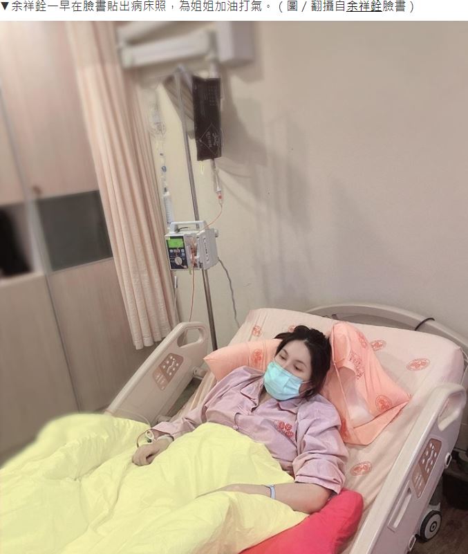 余苑綺為了孩子積極對抗病魔,讓人看見為人母的堅強,弟弟余祥銓一早在臉書貼出病床照,為姐姐加油打氣,他貼文表示,「她跟醫生說我進來就是要進行治療的,不然要幹嘛,我還要去看小孩」,大批網友湧入留言打氣,都期望余苑綺早日康復。