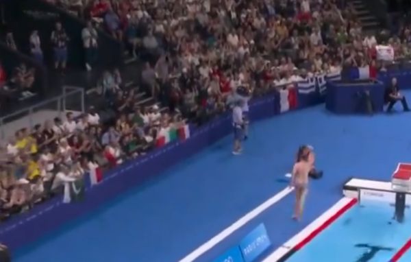 在巴黎奧運女子100公尺蛙式分組預賽的過程中,一個意外的小插曲引起了全場的關注與喝采。據美媒Today.com報導,在比賽中,美國選手艾瑪·韋伯(Emma Weber)的泳帽意外掉入泳池,而一名穿著鮮豔泳褲的救生員迅速做出反應,跳入水中撿回了泳帽,隨後上岸時獲得了全場觀眾的熱烈掌聲。