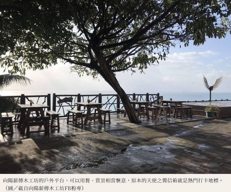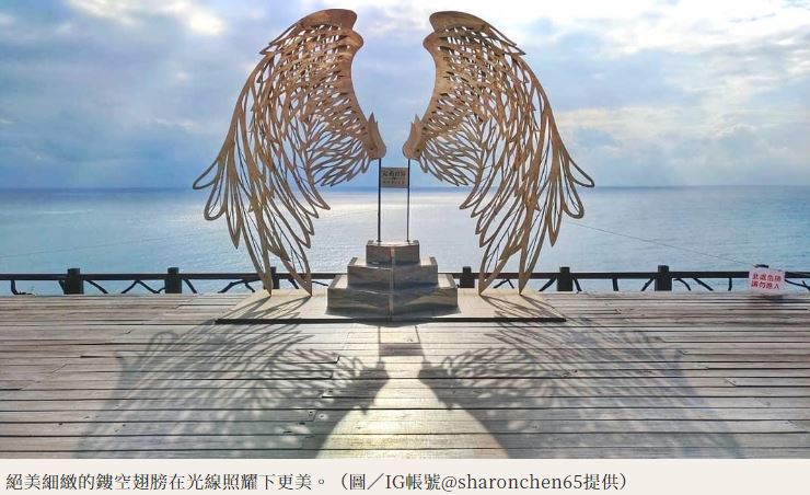 而位於台東多良車站上方的向陽薪傳木工坊,原是由廢棄校園建築改建,戶外區不僅是一處可坐下看海、喝茶、用餐的絕佳空間,曾經的「天使翅膀郵筒」就曾是遊客喜愛的拍照地標,近期店家將天使翅膀「大」升級,不僅加高到近3公尺,層次和細緻度更翻倍的縷空翅膀也更令人驚豔,搭配背後廣闊藍天和無邊際海景,拍照效果加倍夢幻,迅速成為多良車站必訪的拍照打卡新地標!