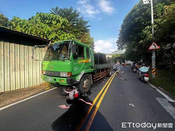 新北市五股區登林路今(5日)早上7時發生一起嚴重車禍,一輛大貨車在行經該路段時,與20歲鐘姓騎士發生劇烈碰撞。鐘男當場遭到貨車輾過,造成左大腿骨折及全身多處擦挫傷。警消接獲報案後,迅速將鐘男送往醫院進行緊急救治。