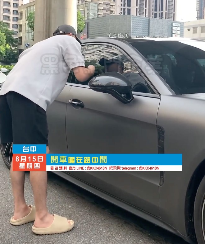當時一輛黑色休旅車無故停在文心路中央車道,完全阻礙了交通流動。該車駕駛在車內熟睡,完全未察覺周圍的車輛排隊和交通狀況。