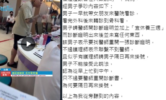 奇美醫院的護理站內發生了一起引人關注的騷亂事件。一名男子在醫院護理站內大聲叫囂,造成現場一片混亂。