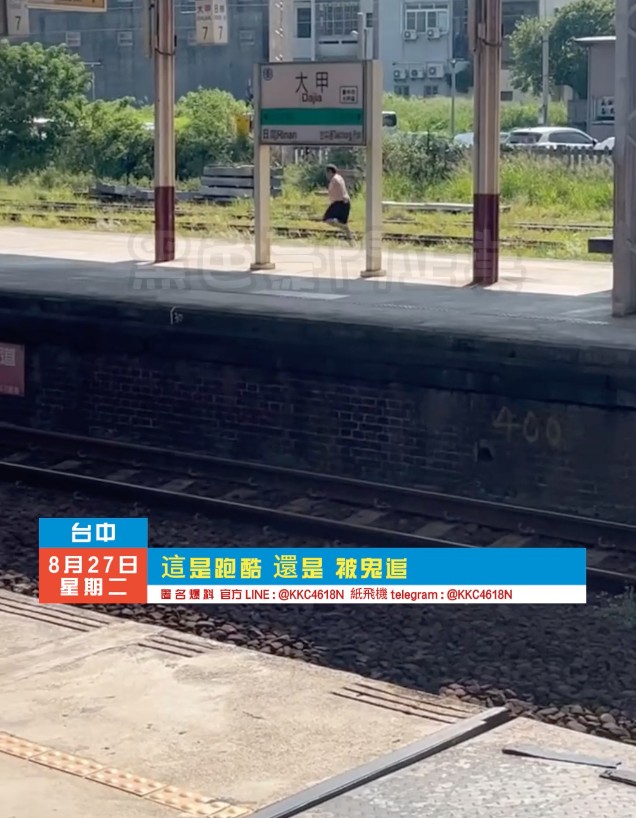 台中市大甲火車站驚現異常情況,一名旅客上半身裸露,在月台上奔跑,造成站內人員及旅客的驚慌和困惑。