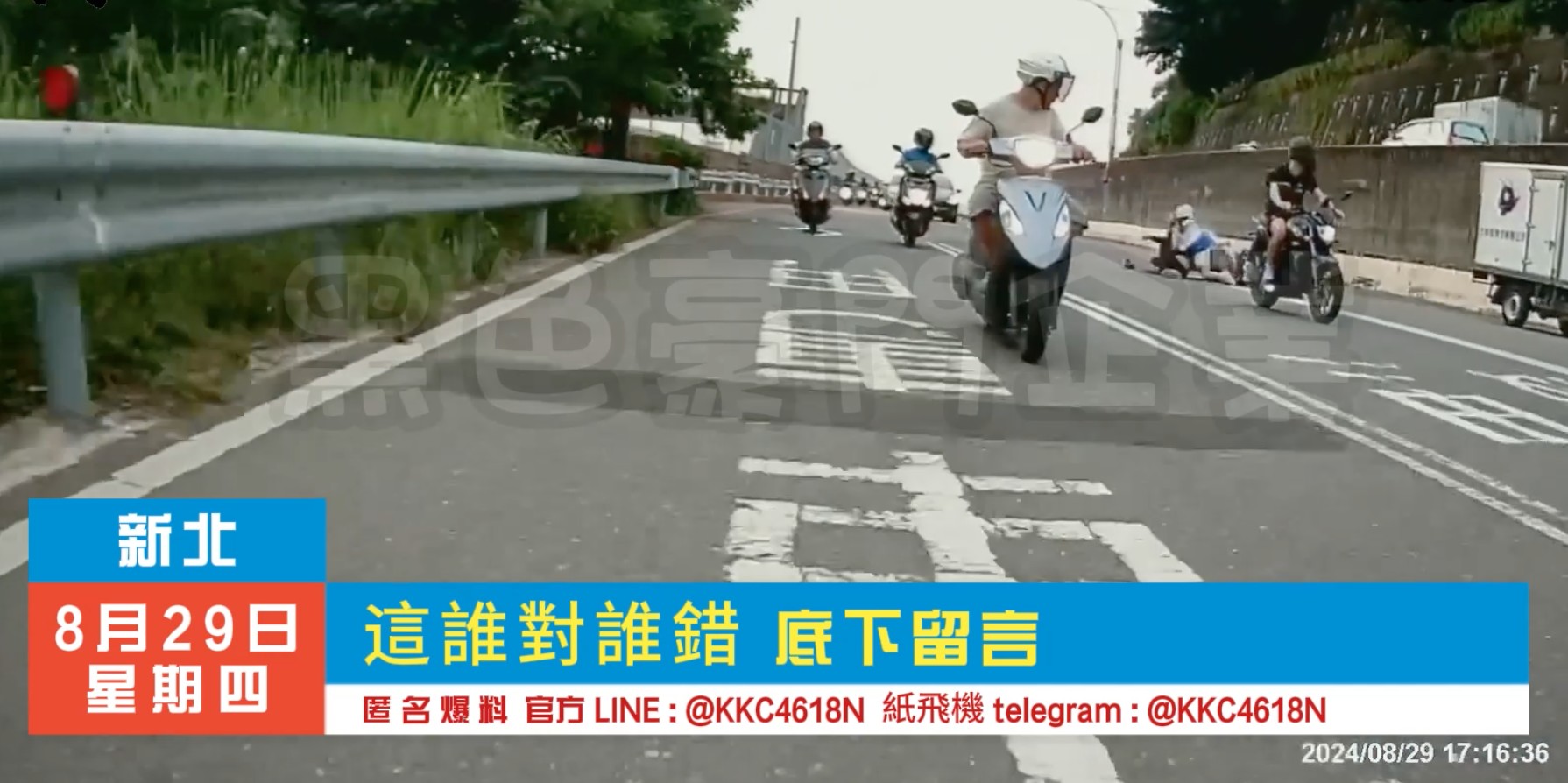 新北市發生一起驚險的機車擦撞事故。一名機車騎士在行駛過程中與另一輛機車發生擦撞,導致被撞騎士重摔在地,現場情況相當危急。