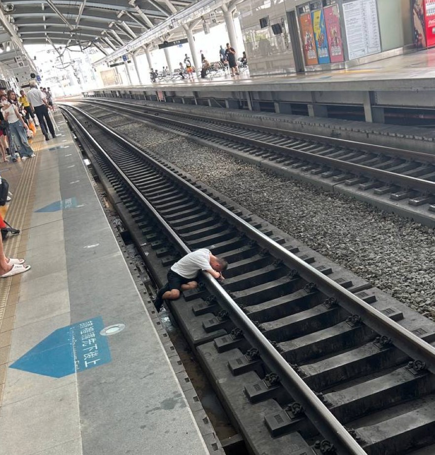 在台中火車站發生一起驚險事件,一名中年男性試圖臥軌自殺,幸得鐵路警察迅速出動,成功將其救起,避免了一場悲劇的發生。