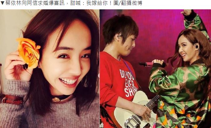 蔡依林與「五月天」阿信爆出緋聞,2人在IG上的互動頻繁,先前蔡依林金曲獎得獎,更大方和頒獎人阿信擁抱,讓不少粉絲相當期待兩人喜訊,還有眼尖粉絲發現,其實2人很早就私下偷偷互動,常會隔空互送曖昧訊息。果然五月天今(3日)在上海舉辦最終場演唱會,請到蔡依林擔任嘉賓,她竟當場逼婚阿信:「我今天就嫁给你!」