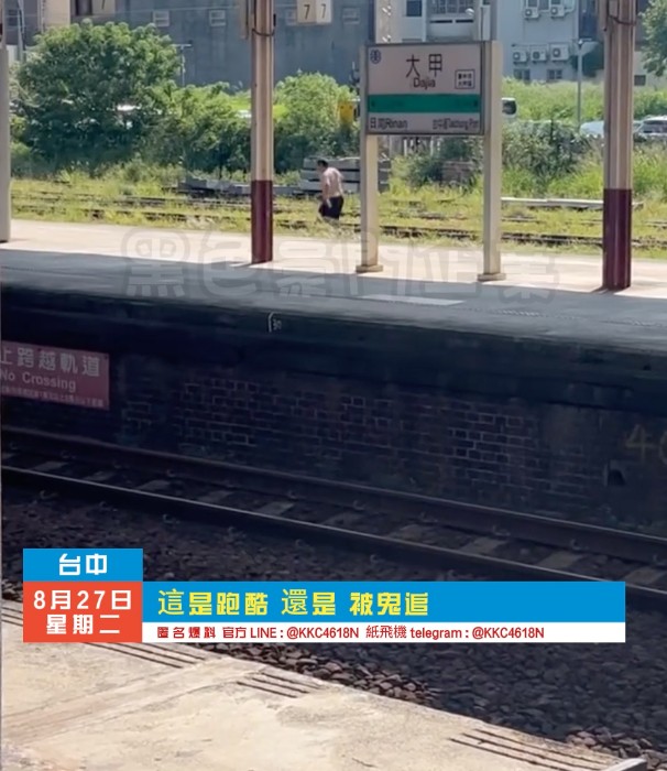 台中大甲火車站發生驚險一幕:一名乘客在月台上瘋狂奔跑,這一突如其來的情況引起了車站工作人員和在場旅客的高度關注。