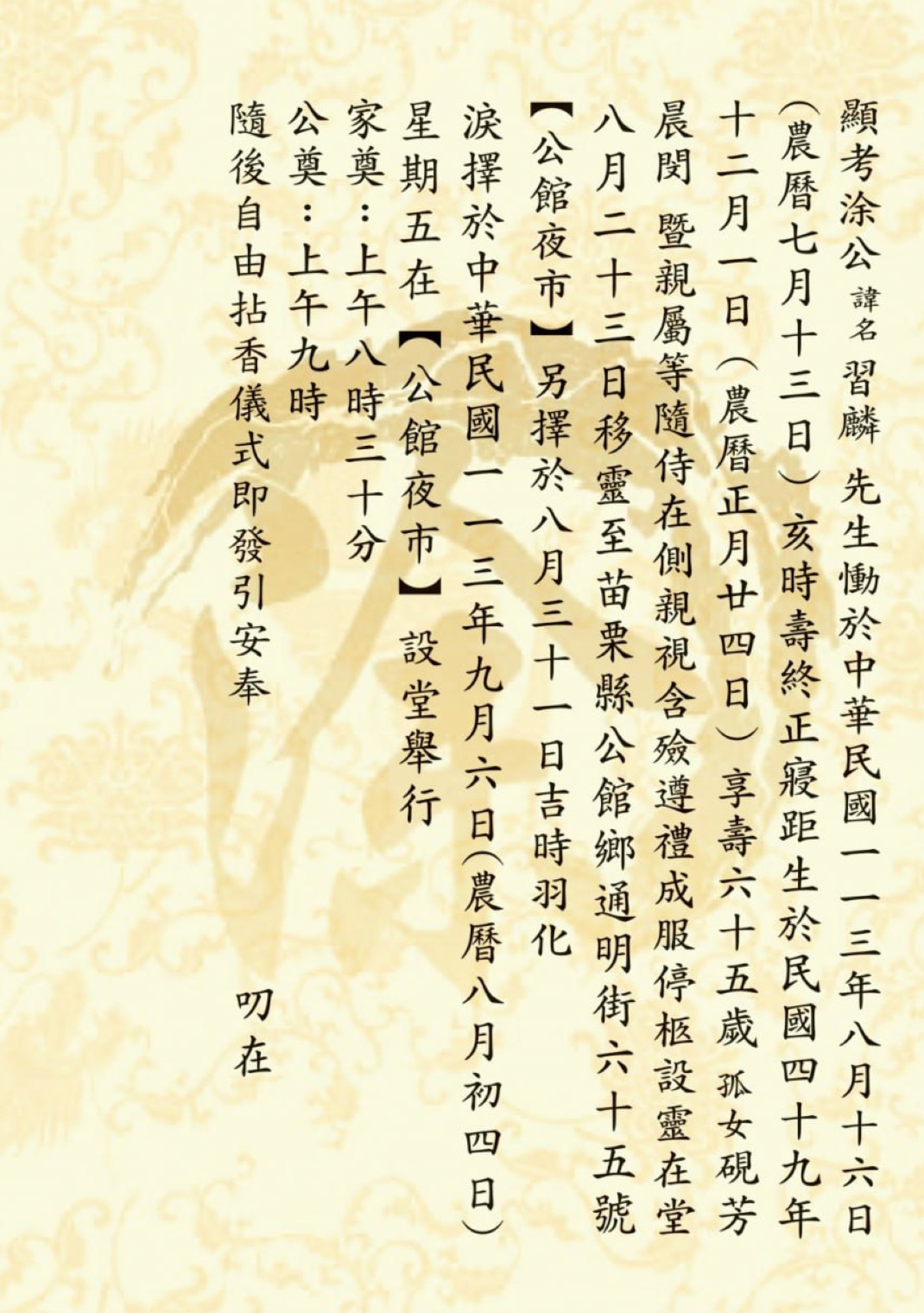 塗習麟的告別式將於近日舉行,具體安排將會另行公告。竹雷企業也將會在今後繼續追隨塗董事長的腳步,秉持他的經營理念和社會責任,致力於企業的持續發展和社會公益。