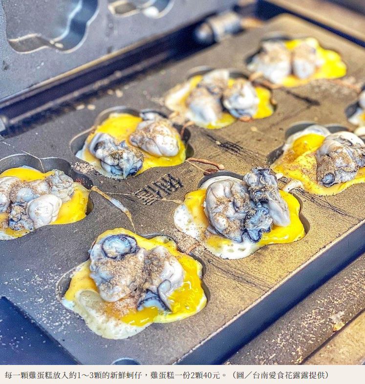 而最新在社群版面上掀起高話題為「海味雞蛋糕」系列,其中「蚵仔雞蛋糕」選用安平的現挖蚵仔,每顆都新鮮飽滿,店家也表示事先將食材川燙過再包進雞蛋糕裡,並加入鳥蛋、起司和少許胡椒鹽提味,看似不搭的組合卻讓部落客台南愛食花露露直誇:好吃無違和感、一口咬下超Juicy。
