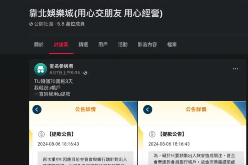 一名匿名網友透露,他試圖將帳戶中的70萬元提現,但在等待數天後依然沒有消息。另一位網友則表示,他甚至連5000到10000元的小金額都無法成功提現。許多玩家在看到這些留言後,紛紛表示自己也遭遇了類似的情況,並表達了對TU娛樂城的擔憂。